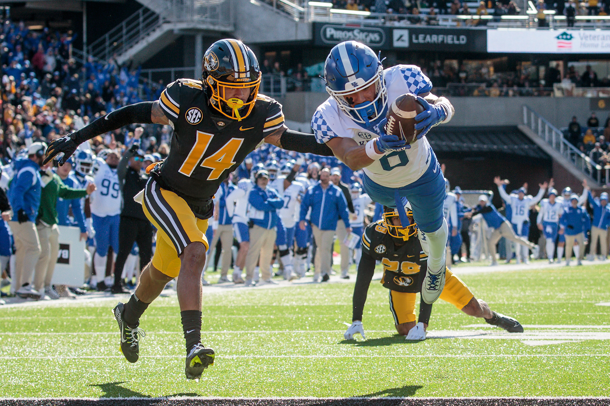 The kentucky wildcats and missouri football teams meet in a southeastern conference game on saturday, nov.